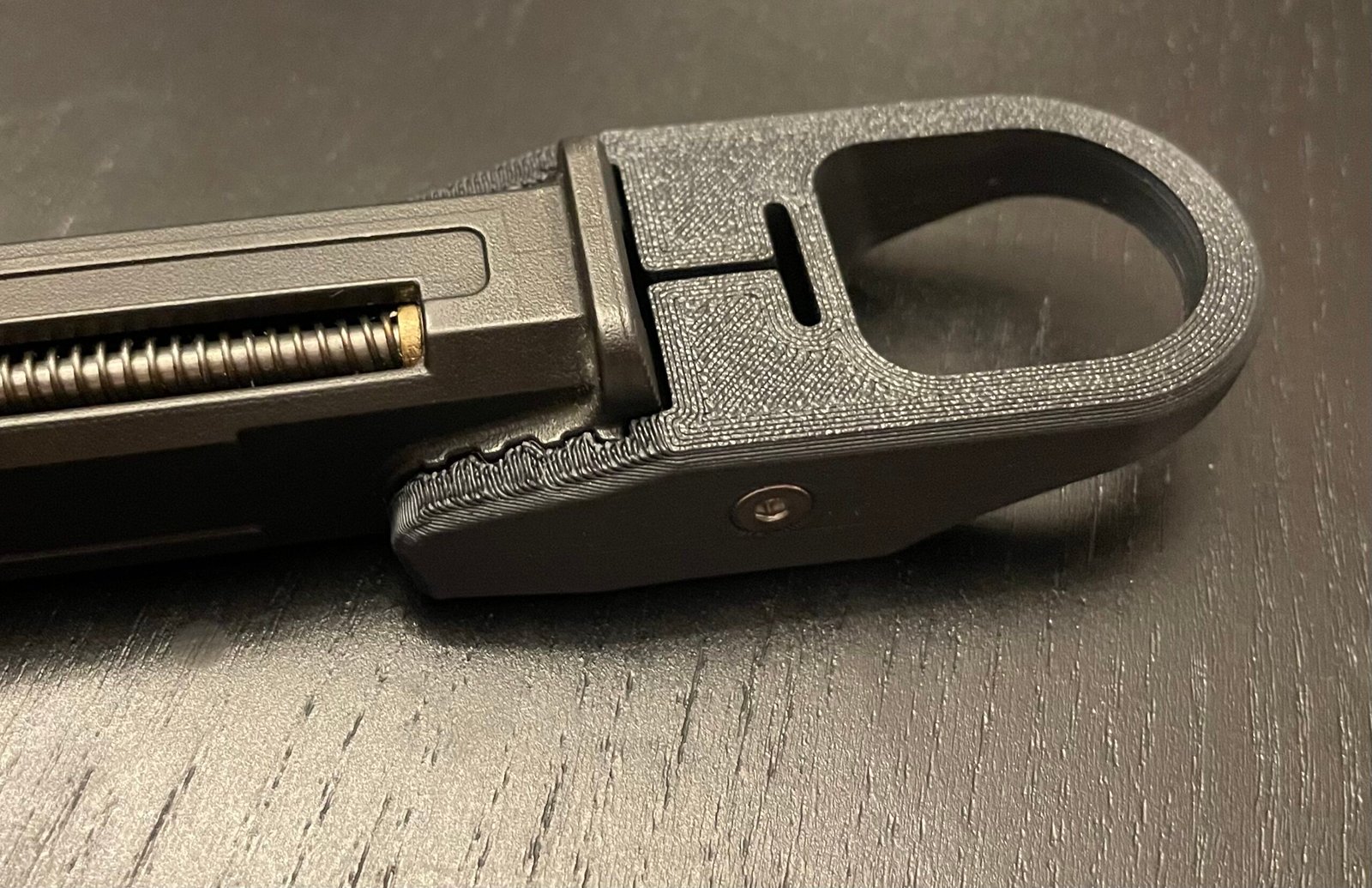 The bolt racker is designed with a convenient finger loop that enables both left-handed and right-handed users to operate it easily. This device offers a snug fit that can be secured using the provided M3 hex screw and hex key wrench, ensuring a comfortable and efficient way to use your Victory. With its ambidextrous design and ergonomic features, the bolt racker is an ideal choice for anyone seeking a hassle-free and smooth operation of their Victory.